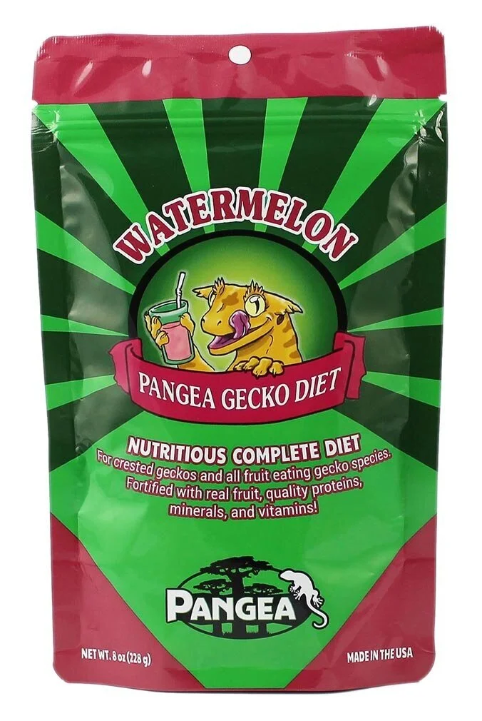 2. CRESTED GECKO DIET & INSECTS: Crested Geckos can be fed the Powdered Crested Gecko Foods along with crickets or other insects. Offer Pangea Fruit Mix Complete Diet 3-4 times per week and insects 2-3 times per week.